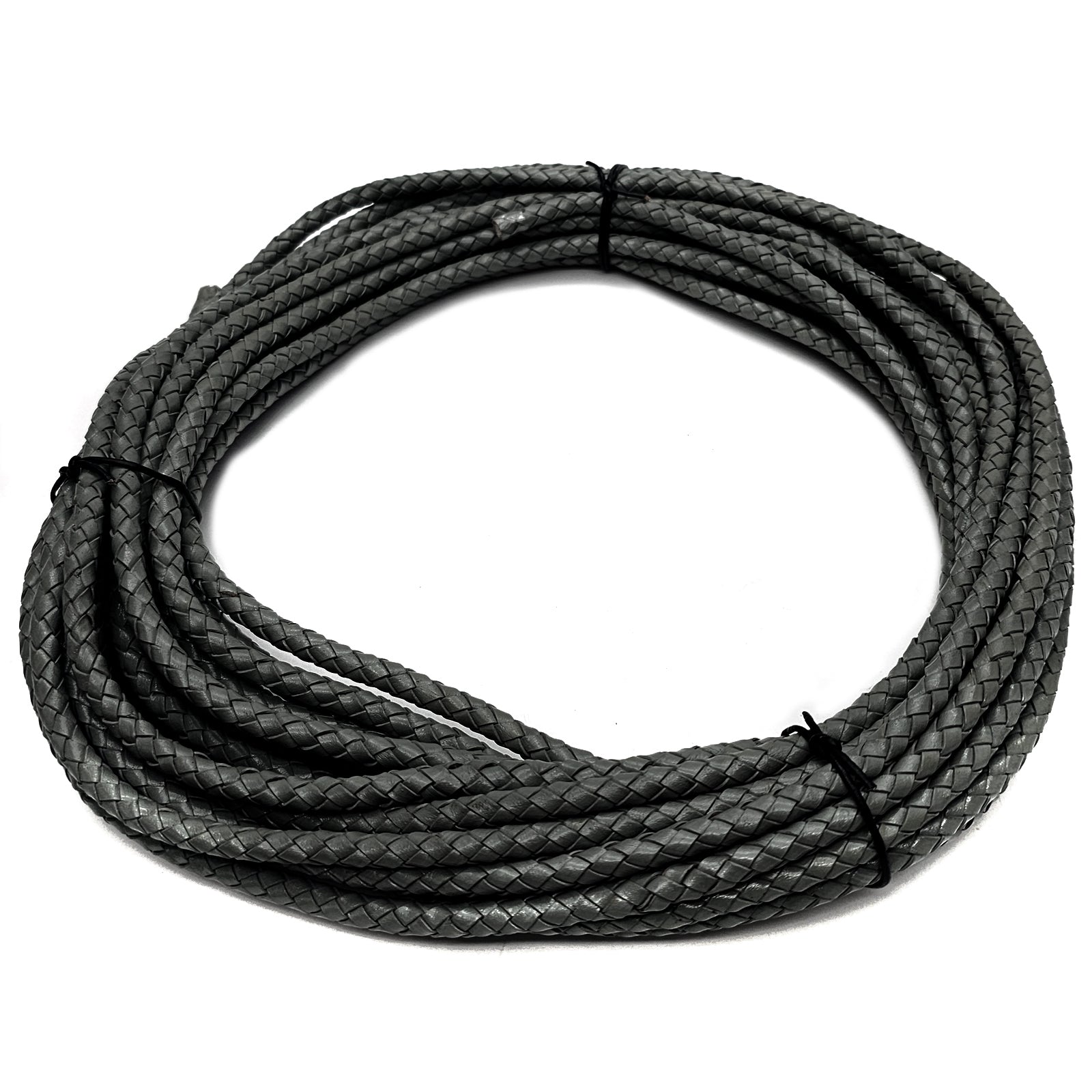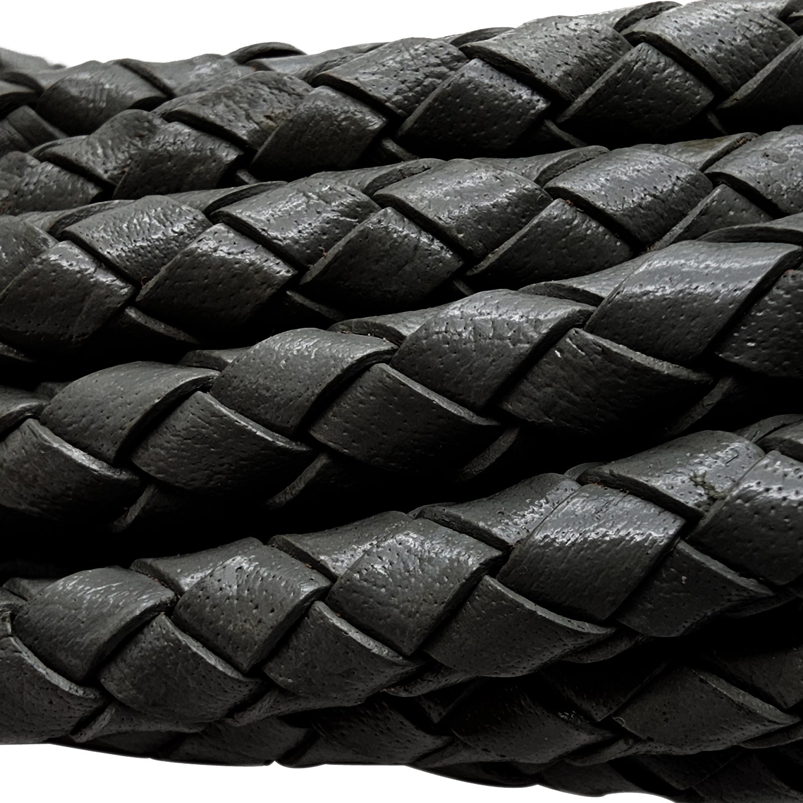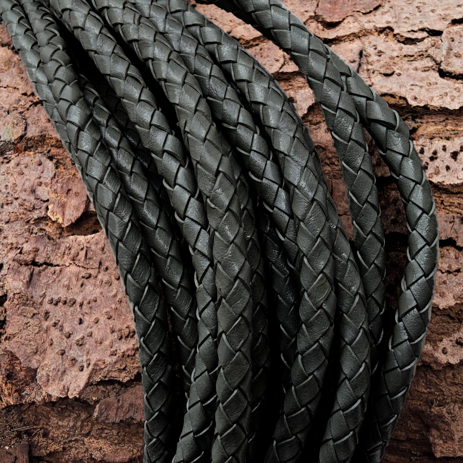 Geflochtene Lederschnur in Schwarz -  6 mm Durchmesser