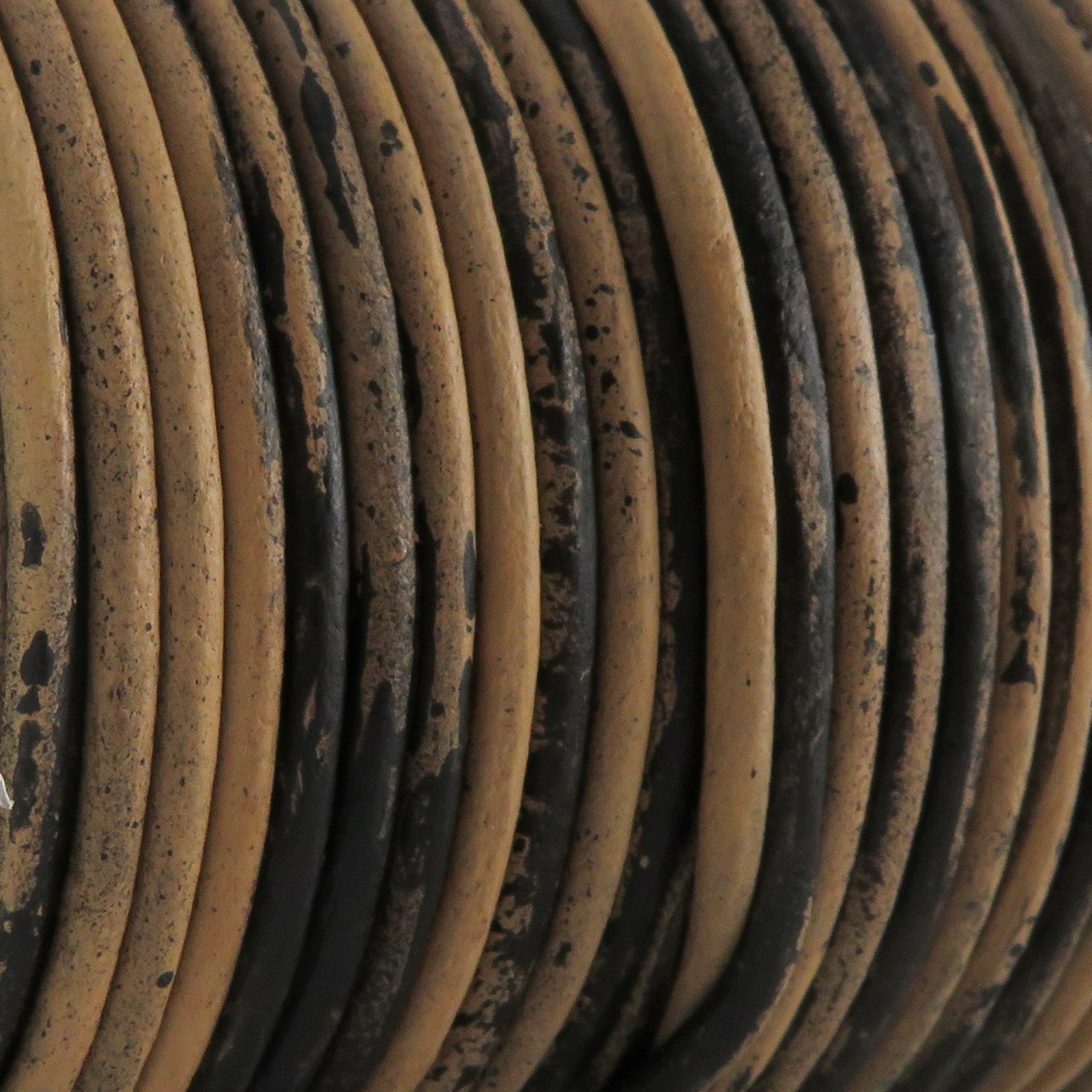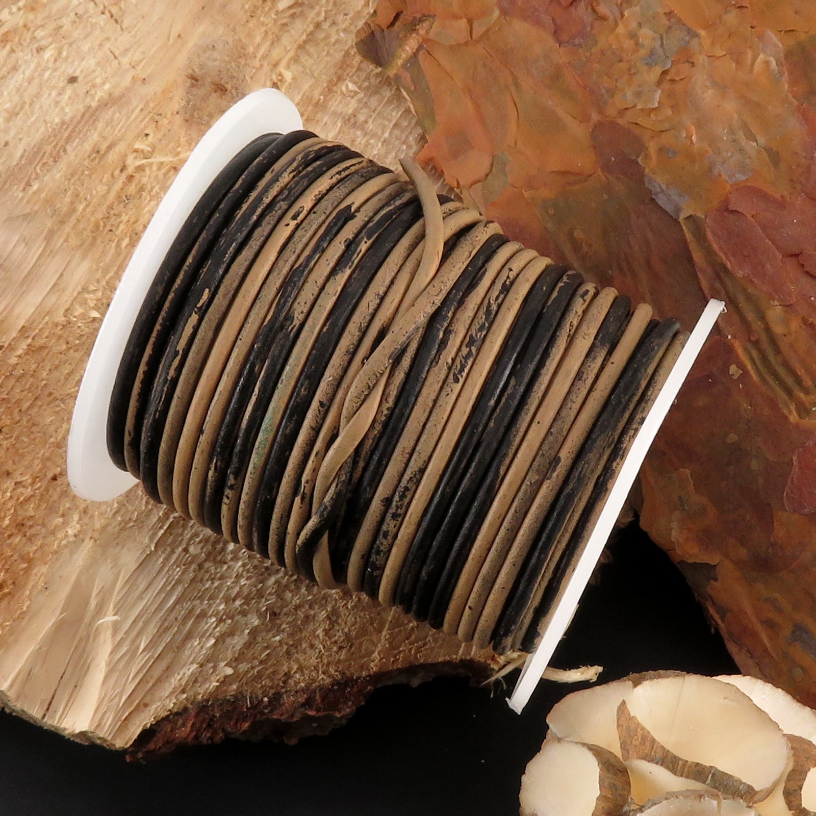esnado Lederschnur Rund 2 mm - Schwarz/Beige. Länge: 25 m auf Rolle