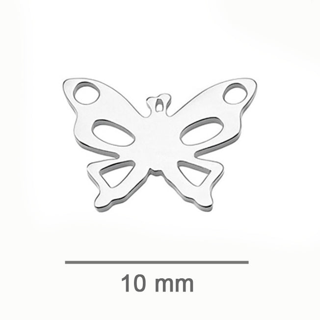 Bringen Sie Leichtigkeit und Freude in Ihren Schmuck mit dem Schmetterling-Anhänger aus 925er Sterling Silber. Mit einer Größe von 10 mm, einer Breite von 9,9 mm, Stärke von 0,4 mm und nur 1 g Gewicht pro Anhänger ist er filigran und besonders leicht. Die mechanische Politur verleiht dem Anhänger einen feinen Glanz und eignet sich perfekt für kreative Schmuckprojekte.