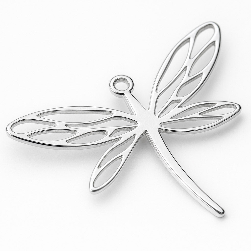 Verleihen Sie Ihrem Schmuckstück einen Hauch von Leichtigkeit mit dem Anhänger „Libelle“ aus 925er Sterling Silber. Mit einer Breite von 30 mm, Stärke von 0,4 mm und nur 1 g Gewicht ist dieser Anhänger filigran und angenehm zu tragen. Die mechanische Politur sorgt für einen dezenten, eleganten Glanz – perfekt für Ketten oder Armbänder.
