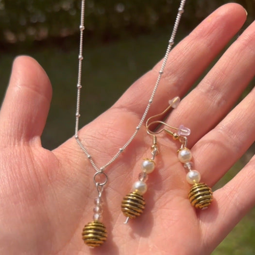 DIY Halskette und Ohrringe mit Perlen und goldenen Akzenten