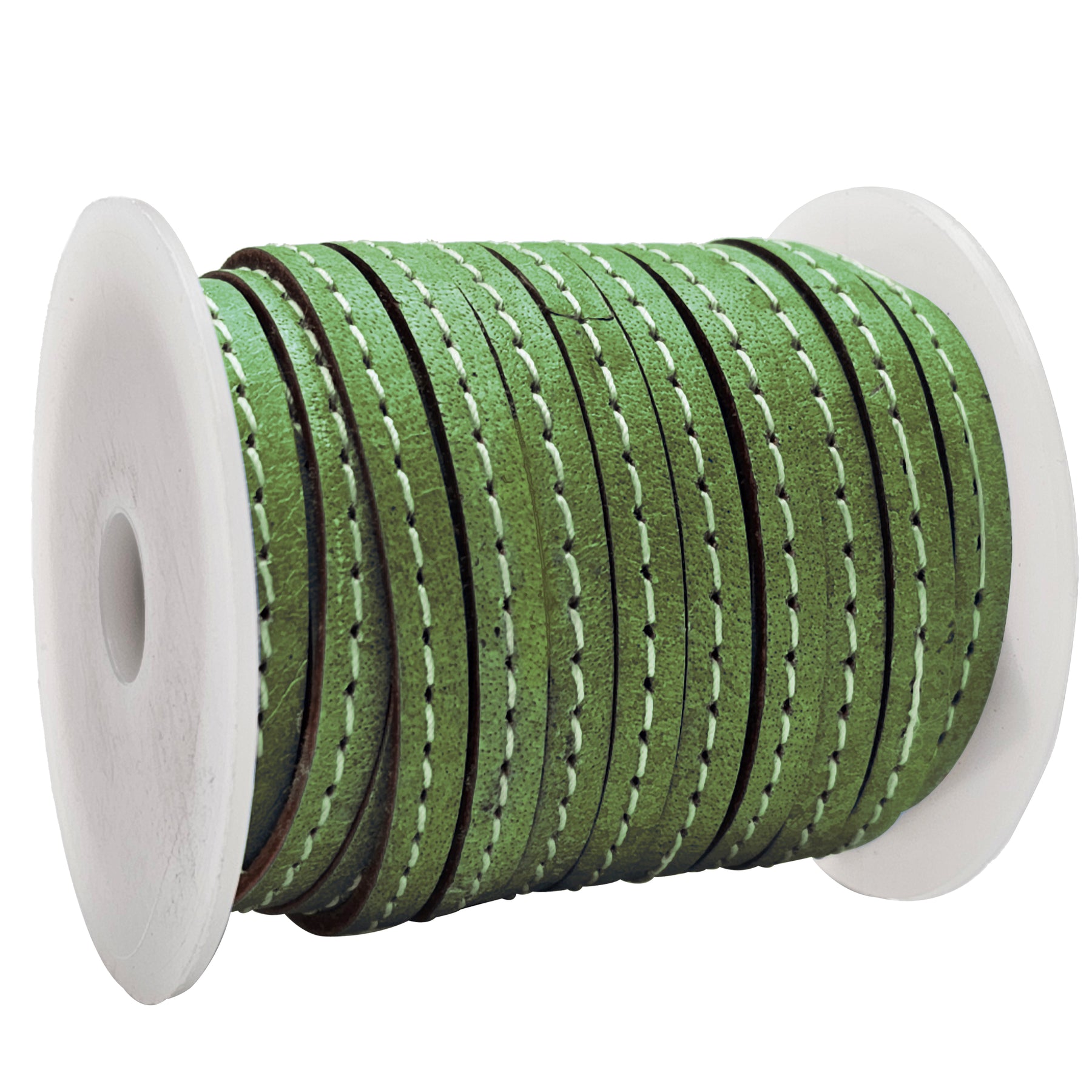 esnado Lederband flach mit Ziernaht  5 mm - Moosgrün