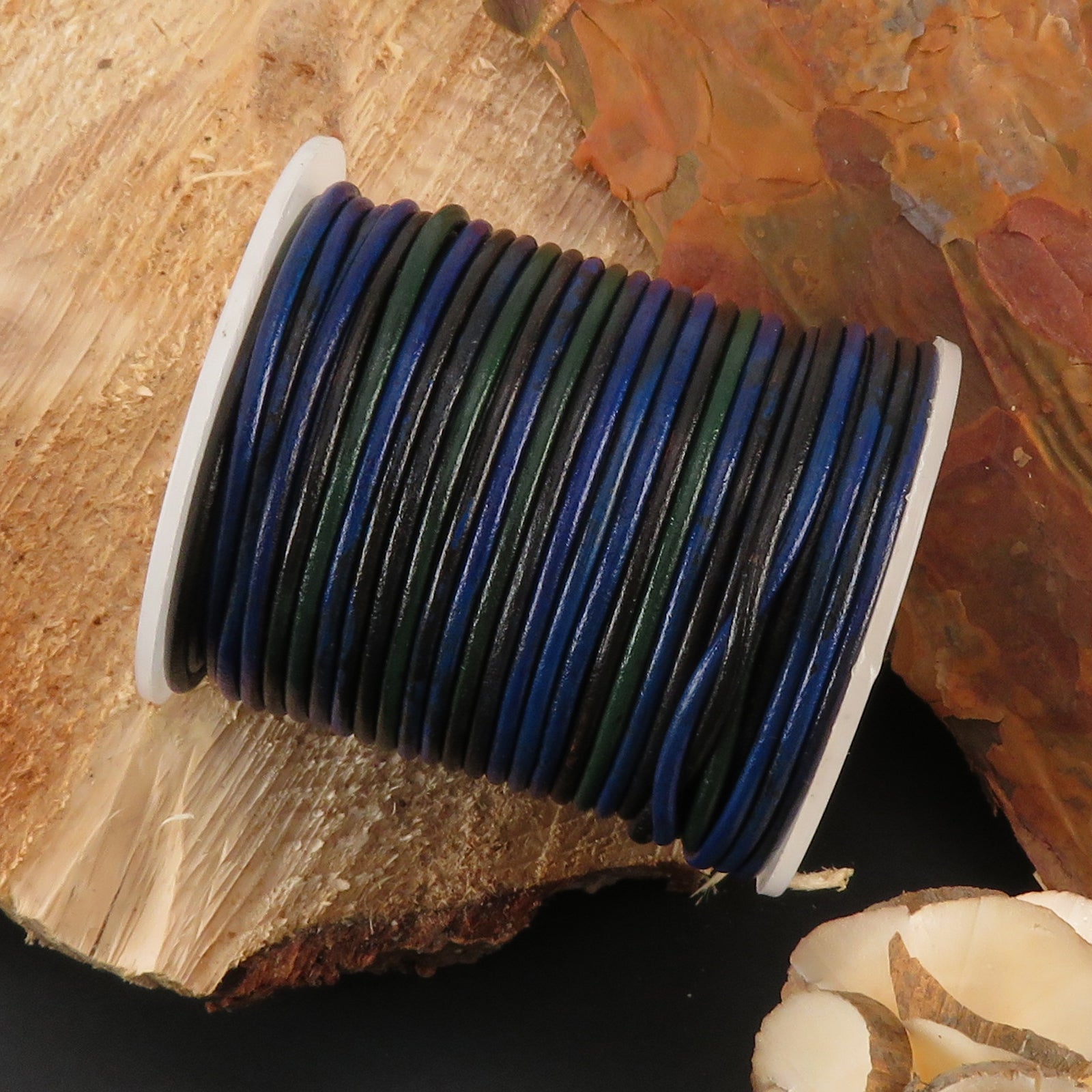 Zweifarbige Lederschnur von Esnado in Blau/Grün – 2 mm – 25 Meter für DIY & Schmuckprojekte