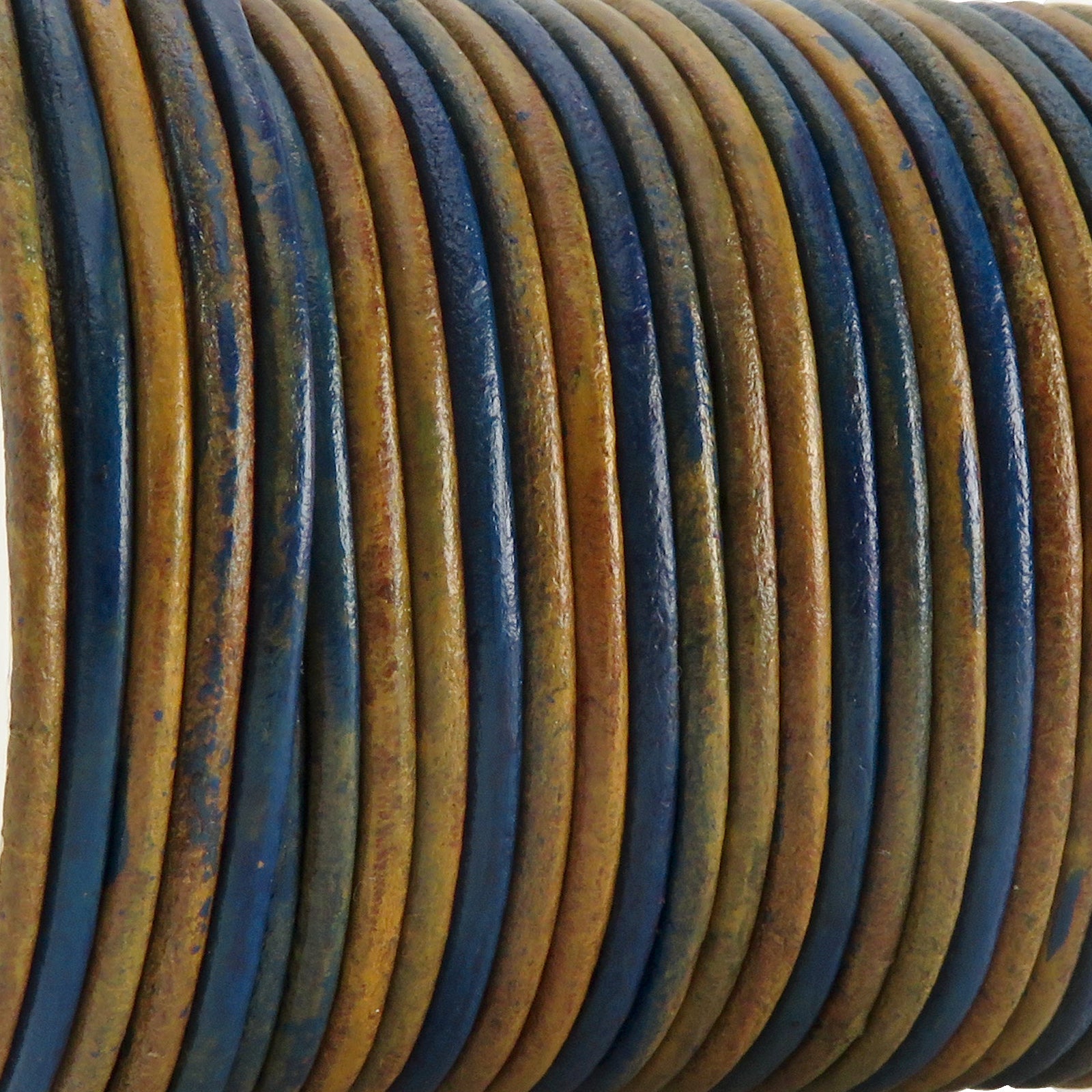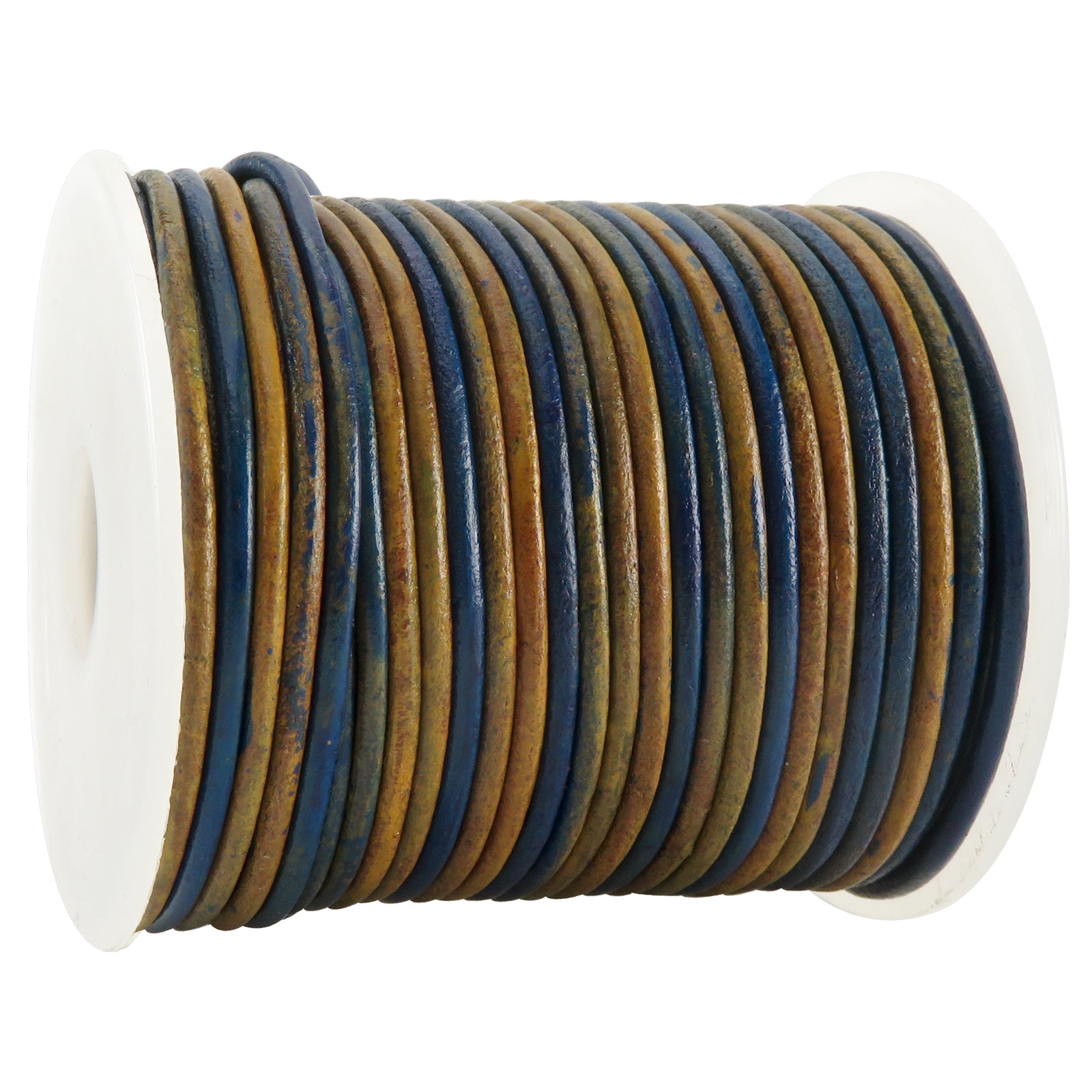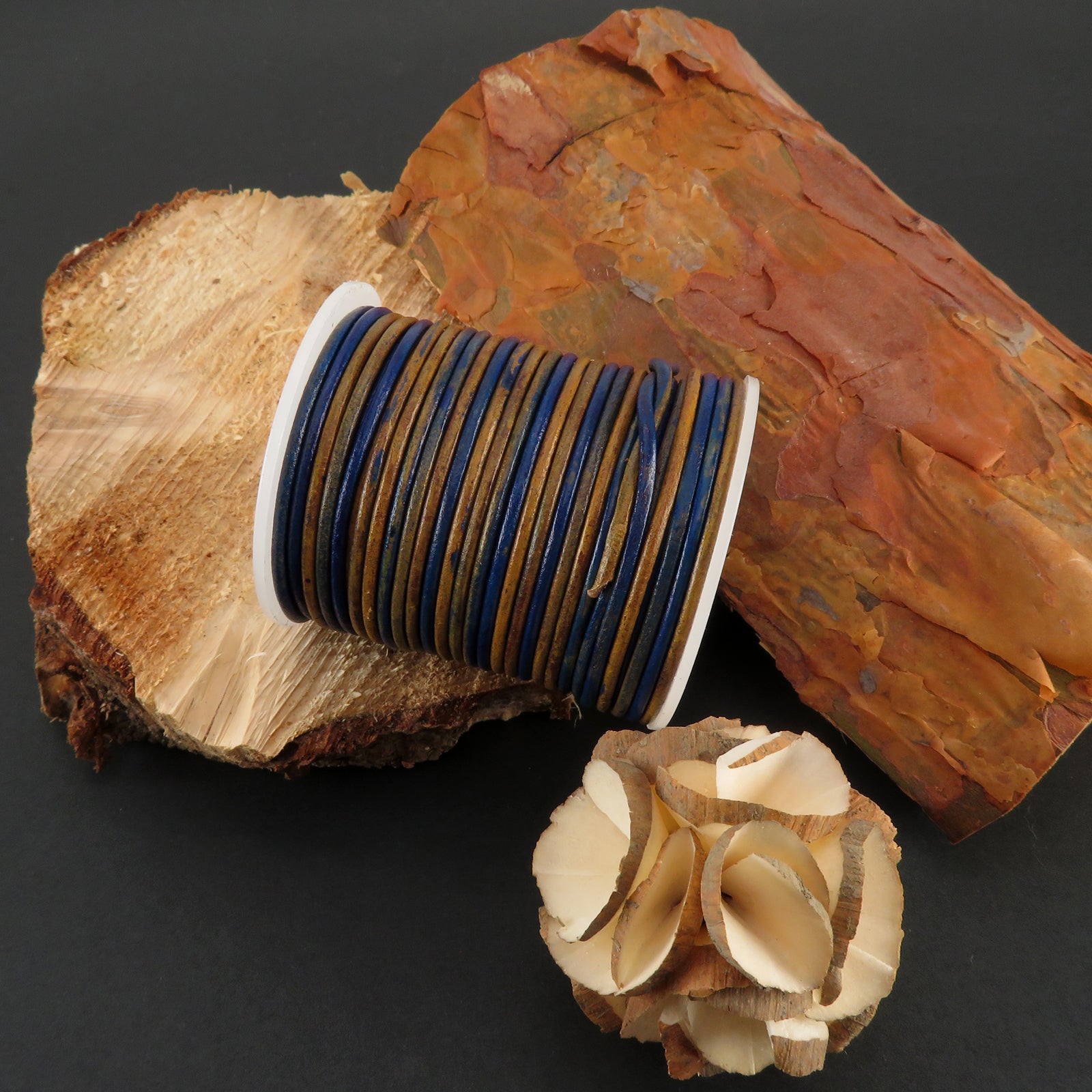 esnado Lederschnur Rund 2 mm - Bicolor Blau/Natur. Länge: 25 m auf Rolle