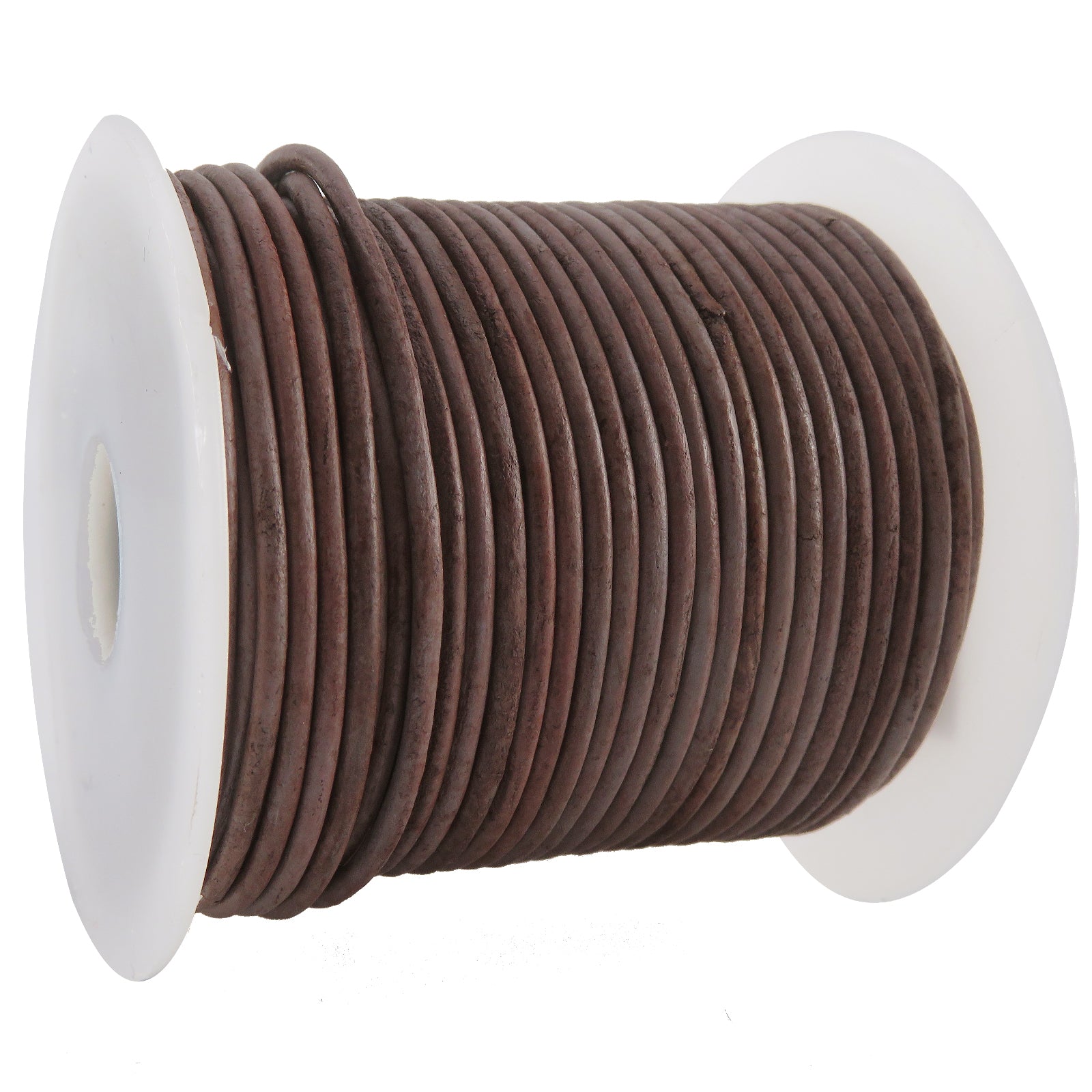 esnado Lederschnur Rund 2 mm - Bicolor Grau/Braun. Länge: 25 m auf Rolle