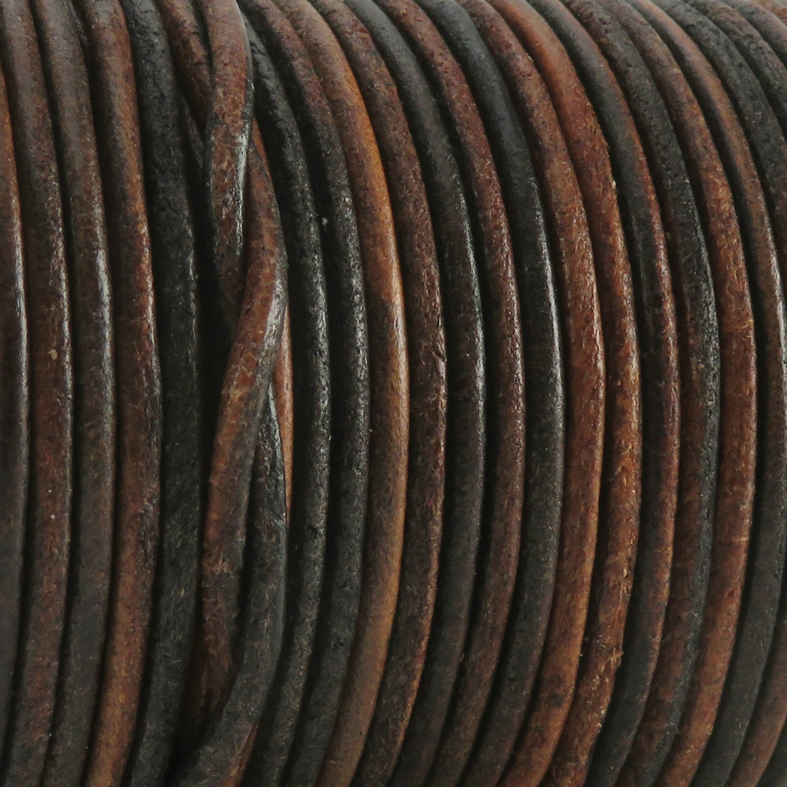 esnado Lederschnur Rund 2 mm - Bicolor Schwarz/Natur. Länge: 25 m auf Rolle