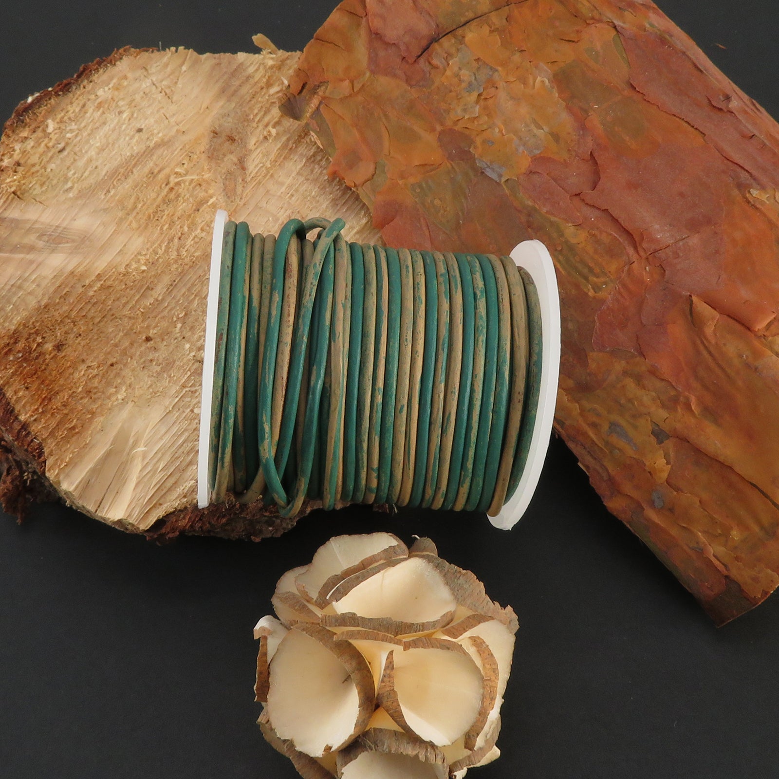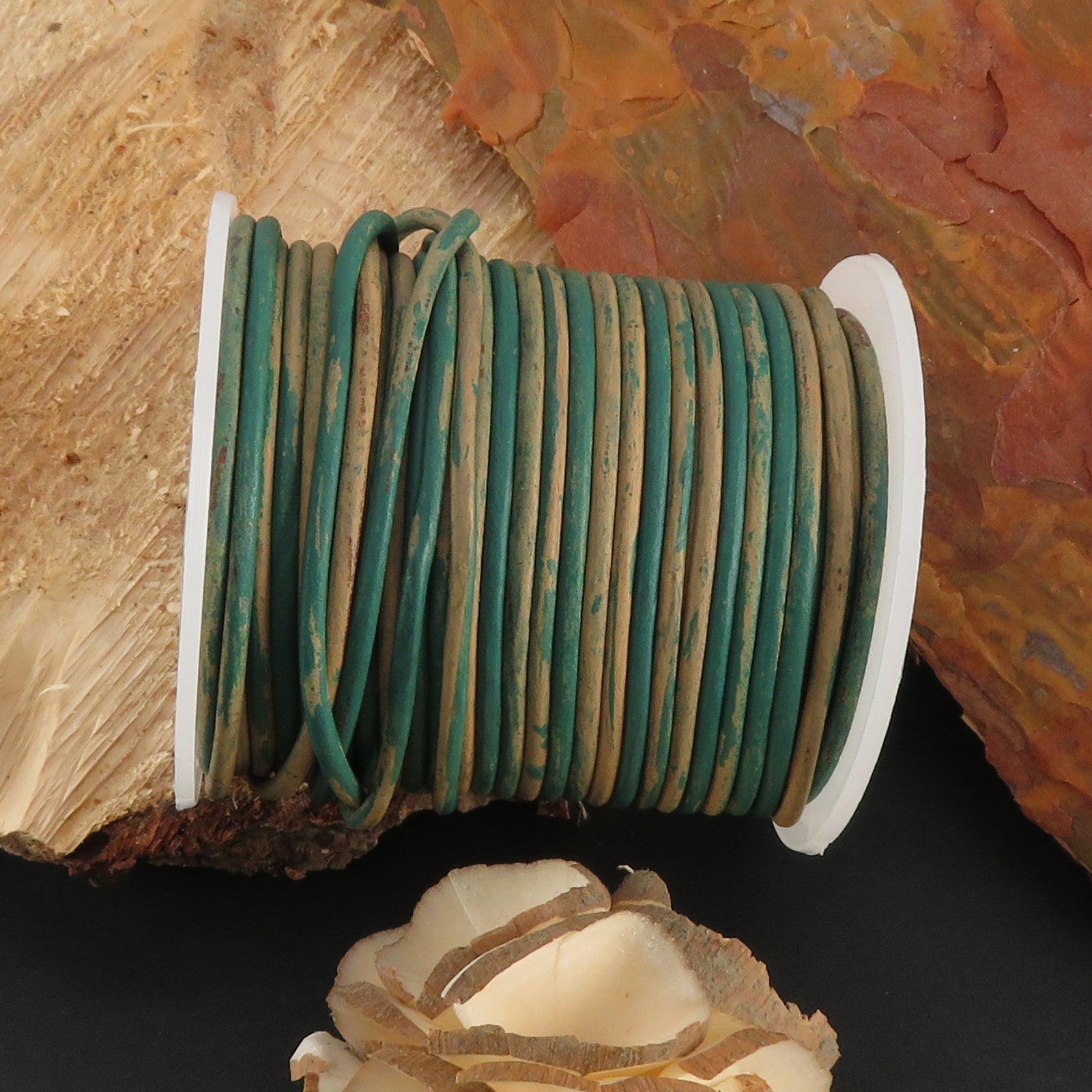 Zweifarbige Lederschnur von Esnado in Türkis/Beige – 2 mm – 25 Meter für DIY & Schmuckprojekte